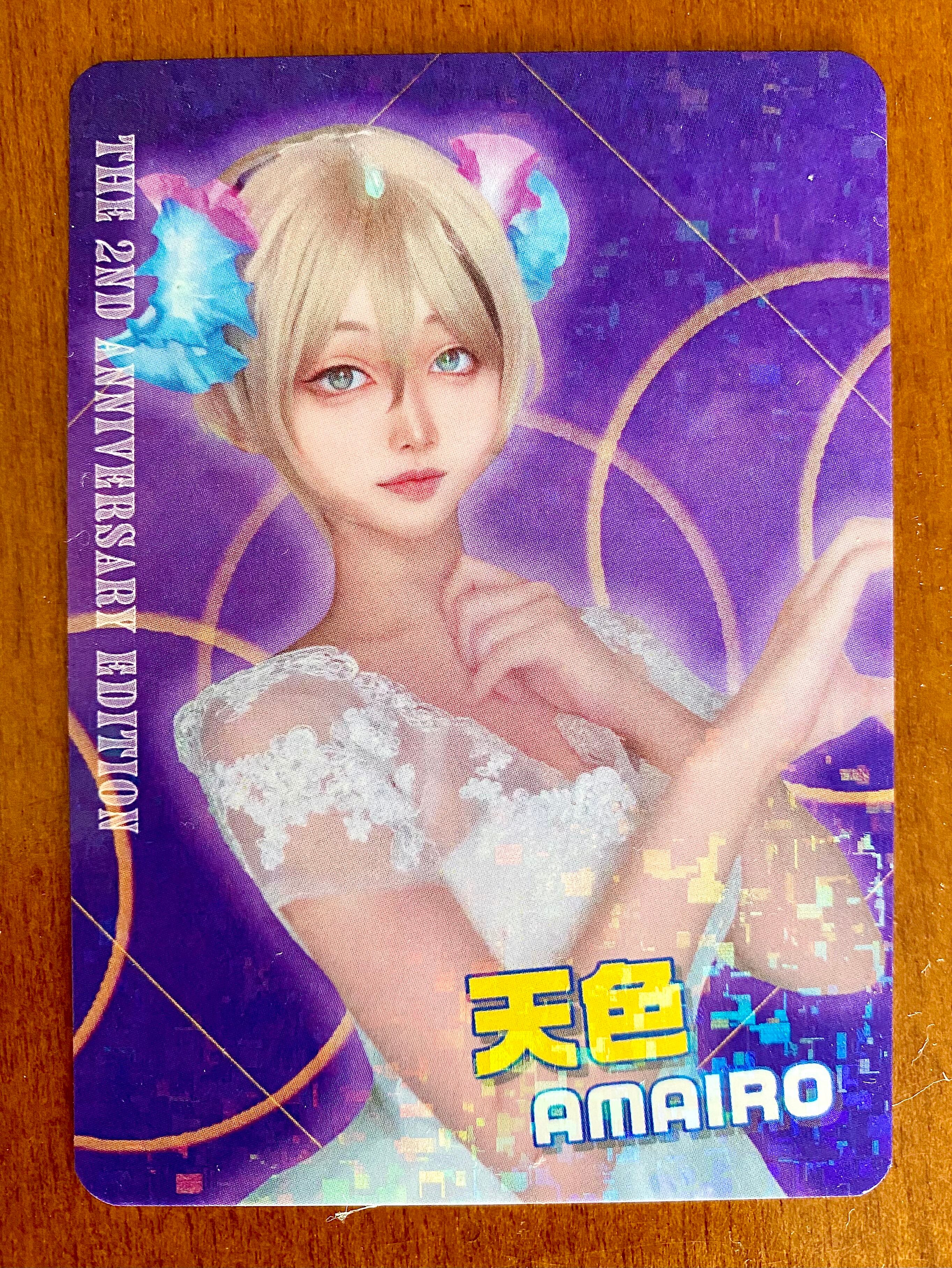 本家フラフリ作品の朝顔の花モチーフの天色(あまいろ)ちゃんの正装バージョン。キラキラホログラムがレア感を引き立ててます!